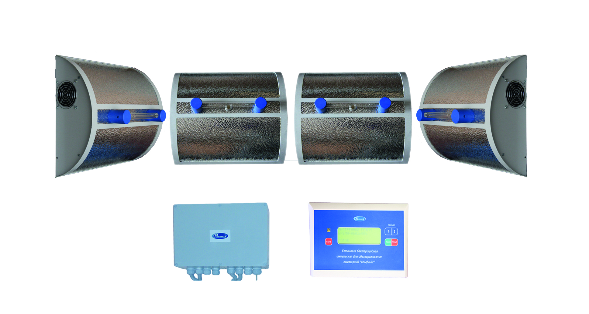 Импульсная ультрафиолетовая установка «Альфа-02» производства НПП «Мелитта» – единственный в мире вид стационарного оборудования, позволяющий многократно, с высокой эффективностью и за минимальный промежуток времени проводить обеззараживание воздуха и открытых поверхностей помещений от всех видов патогенной микрофлоры (бактерии, их споры и полирезистентные штаммы, грибы и вирусы).