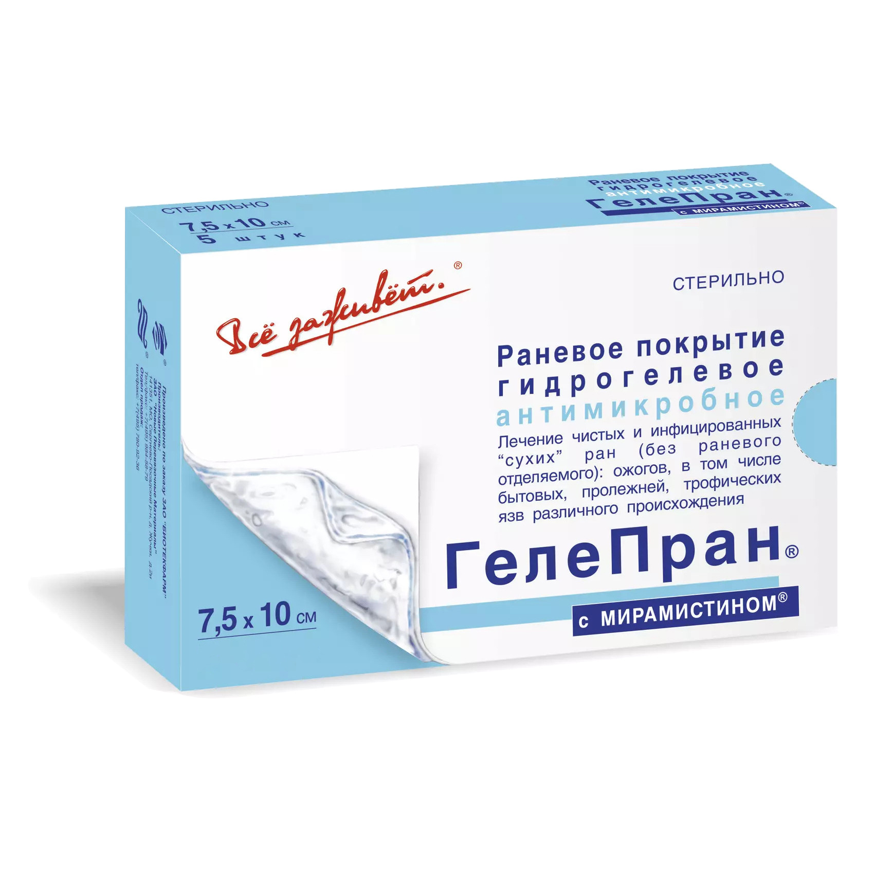 Гелепран защищает рану от проникновения микробов извне, поддерживает оп- тимальную влажную среду.